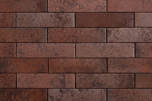 Кирпич имеет гладкую матовую лицевую поверхность с мелкорельефными углублениями произвольной формы. Присутствует перламутровый блеск. В основе паттерна теплые оттенки от коричневого до темно-коричневого. Вес 2,4-2,7 кг/шт