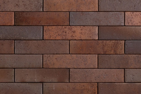 Кирпич имеет гладкую матовую лицевую поверхность с мелкорельефными углублениями произвольной формы. Присутствует перламутровый блеск. В основе паттерна холодные оттенки от коричневого до темно-коричневого. Вес 2,4-2,7 кг/шт