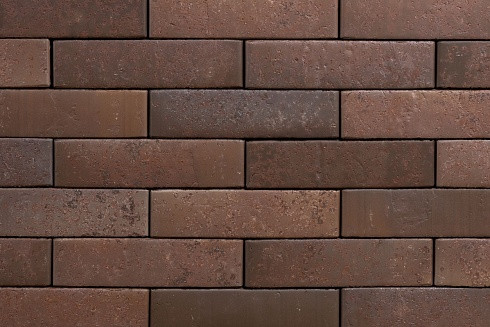 Кирпич имеет гладкую матовую лицевую поверхность с мелкорельефными углублениями произвольной формы. Присутствует перламутровый блеск. В основе паттерна холодные оттенки от коричневого до темно-коричневого. Вес 2,4-2,7 кг/шт