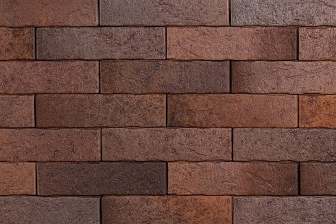 Кирпич имеет гладкую матовую лицевую поверхность с мелкорельефными углублениями произвольной формы. Присутствует перламутровый блеск. В основе паттерна холодные оттенки от коричневого до темно-коричневого. Вес 1,6-1,8 кг/шт