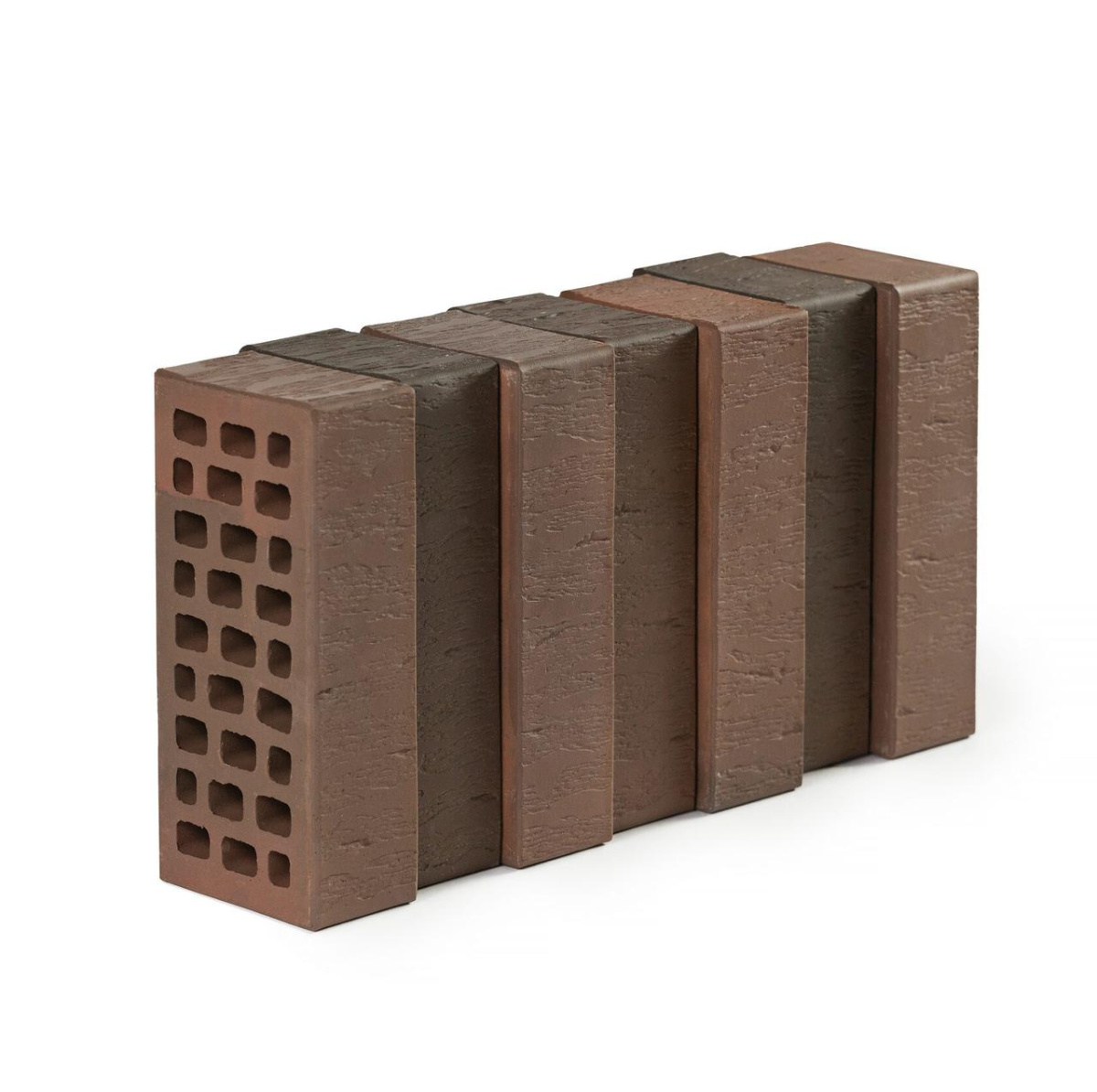 В составе партии практически нет светлых оттенков. Лицевой кирпич “Нева” с вертикальным рустикатором производится по технологии флеш-обжига. По факту это горение газа в условиях низкого содержания кислорода, что позволяет производить кирпич коричневых оттенков без окрашивания.